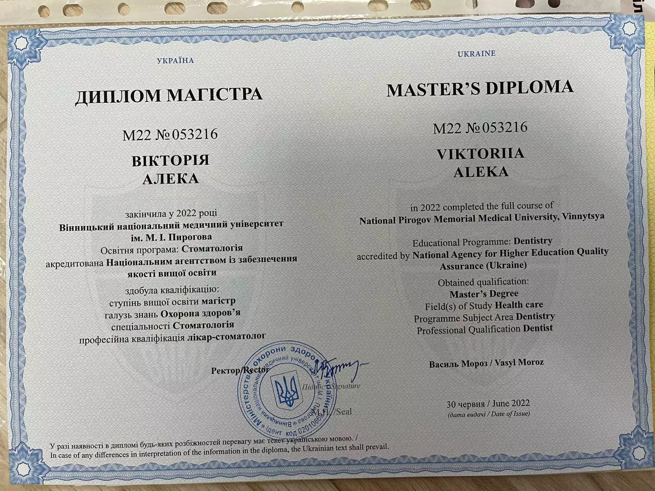 Вища освіта: Вінницький національний медичний університет ім. М. І. Пирогова.