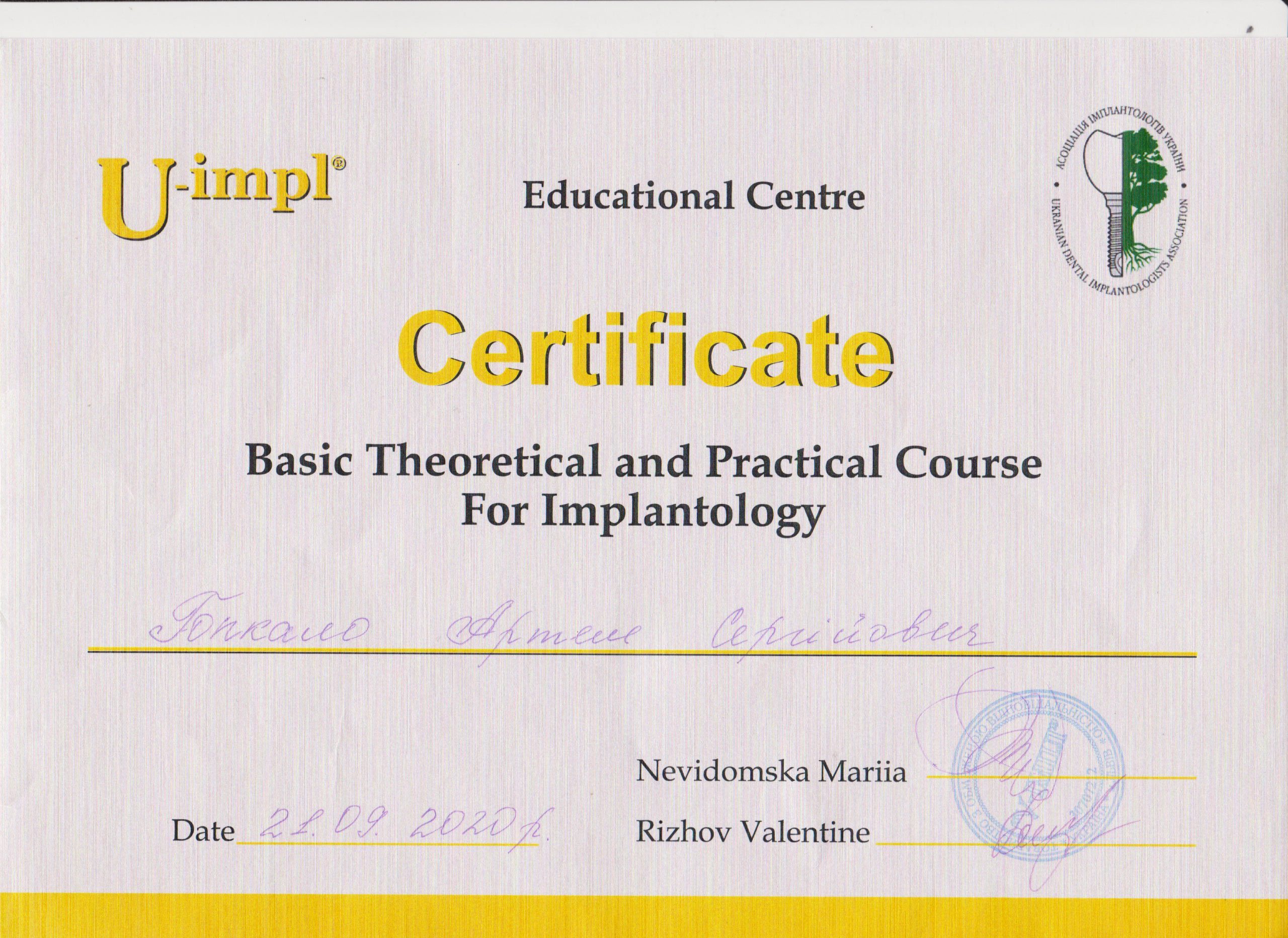 "Basic Theoretical and Practical Course For Implantology", м.Київ.
