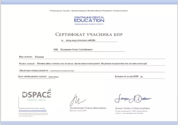 Тренінг «Професійна гігієна на етапах лікування пародонту. Ведення пацієнтів після імплантації», навчальний центр DentalSpace, м. Київ.