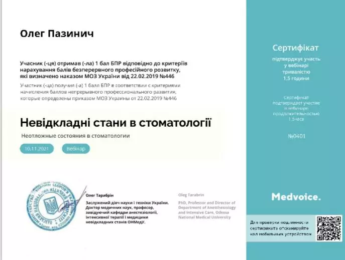 Вебінар «Невідкладні стани в стоматології».